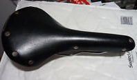 The bike now has a beautiful hard leather “Swallow” saddle made by Lycett in the 1950s. Lycett was one of the early competitors of – and was eventually absorbed by – the well-known Brooks Company. The saddle is well-worn and in very good condition, but it’s adapted to the shape of someone else’s rear end! So I’ll have to break it in…