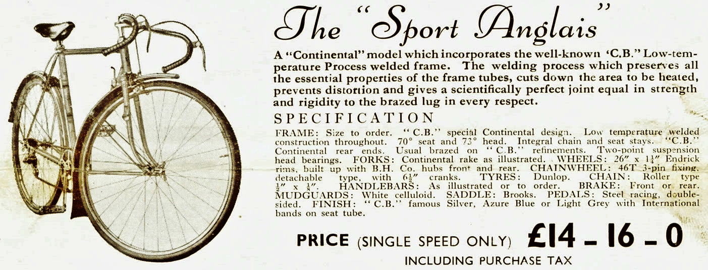 This time it’s a Claud Butler, 1942 vintage, a model called the Sport Anglais, which appears in the Claud Butler 1942 catalogue. I remember as a kid walking home from school every day past the local bike shop that always had a beautiful Claud Butler in the window. I was desperate to have a Claud Butler, but I never did get one. So this will be a very old ambition finally achieved.