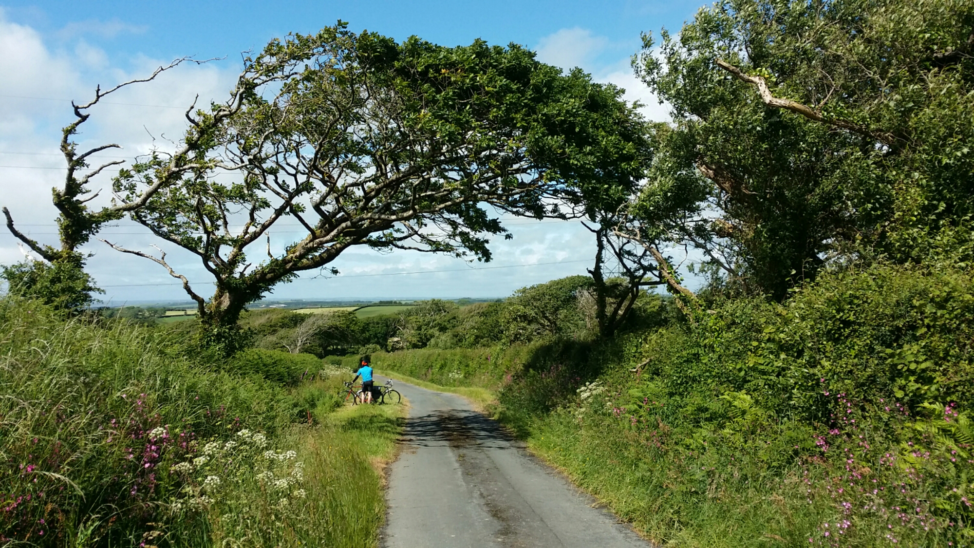 A terrific day. We covered 64 miles from Truro to Upton, near Bude. Beautiful Cornish countryside, with densely wooded river valleys and lots of short steep climbs and descents – about 1500 metres total gain/loss of elevation.