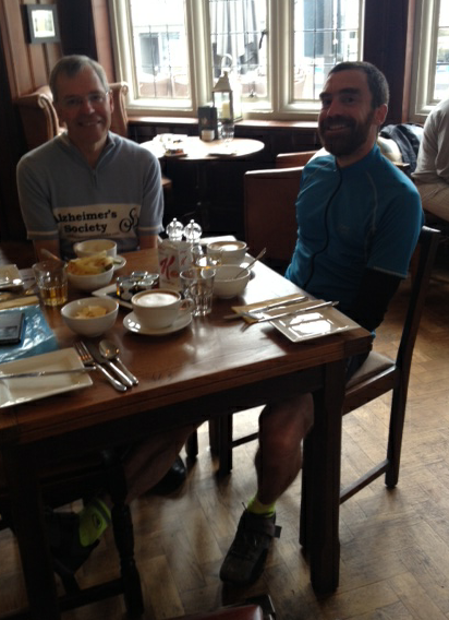 Today is going to be difficult. We have to do 63 miles to Ross-on-Wye. In good weather it’s not easy – we have to go over the Mendips, cross the Severn Bridge and do plenty of climbing near the Wye valley.
