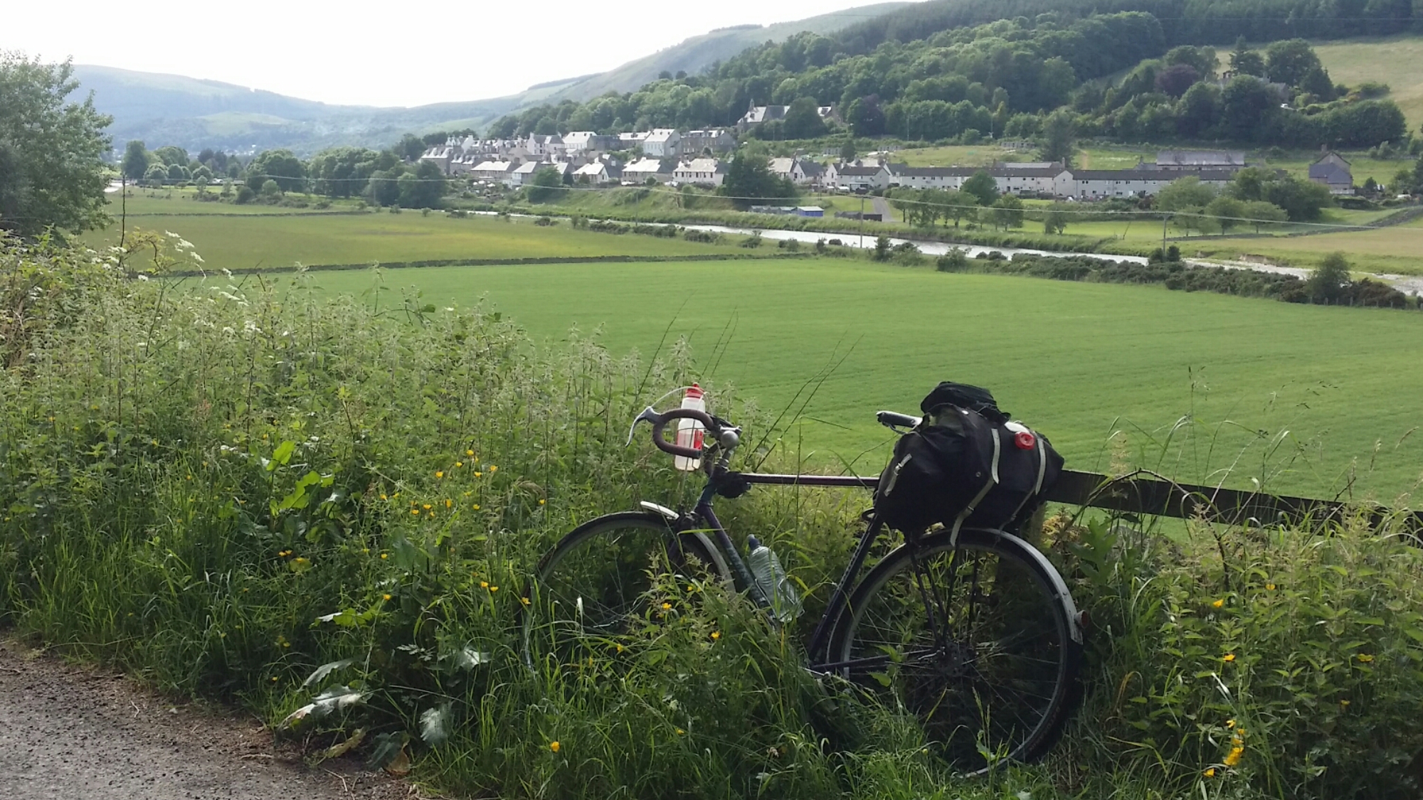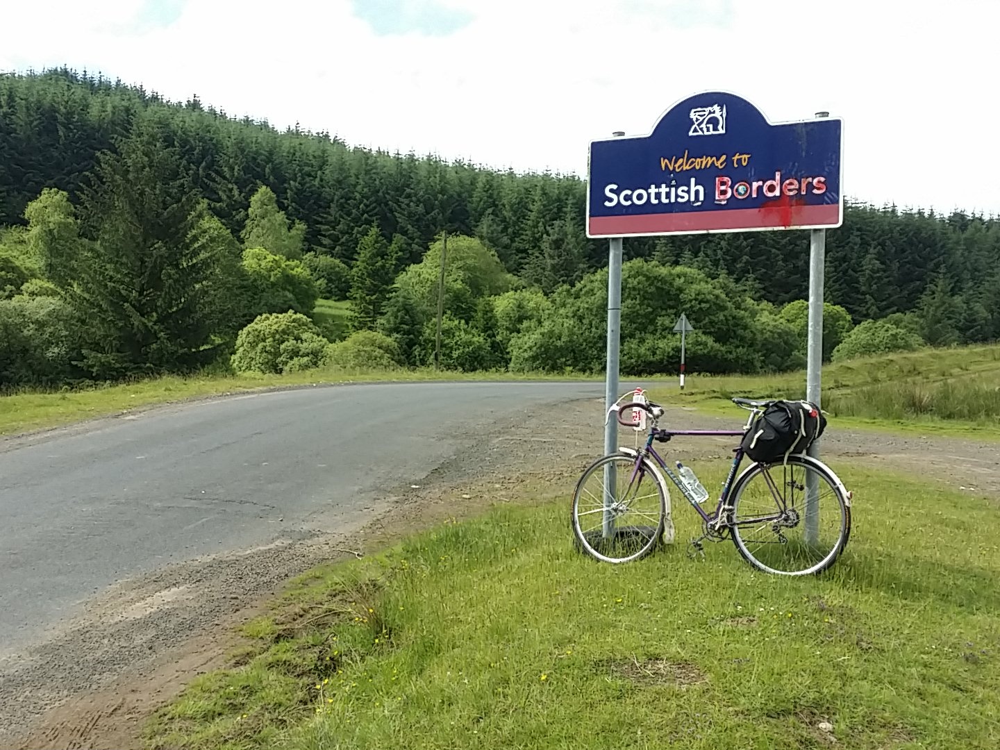 The longest stage yet – 71 miles across the Scottish border to Innerleithen in the Tweed valley. Plenty of climbing (over 1500 metres) and some scary descending (max speed 35mph, despite my extreme caution). It’s nice to hear Scottish accents. Beautiful countryside and sunny weather – it really was a tremendous day. Just a shame I had no cycling companion to share it.